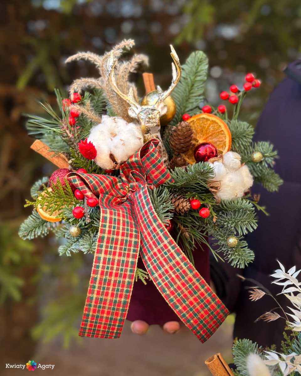 Przedstawione zdjęcie pokazuje jedynie przykładową kompozycję w tym stylu i formie. Każde zamówienie wykonujemy indywidualnie i nigdy nie tworzymy dwóch jednakowych dekoracji. 💪🏼🎄