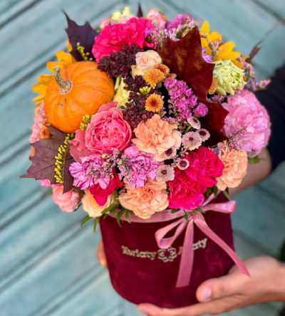Kompozycja w drewnianej skrzyneczce lub dekoracyjnym koszu stworzona jest z mieszanych sezonowych doniczkowych roślin. Florysta wykonujący zamówienie, samodzielnie wybiera rodzaje użytych kwiatów z obecnie dostępnych. Dzięki temu macie pewność, że w kompozycji będą piękne, sezonowe rośliny i dodatki. Kolor, rodzaj naczynia i skład kompozycji może się różnić w zależności od dostępności.